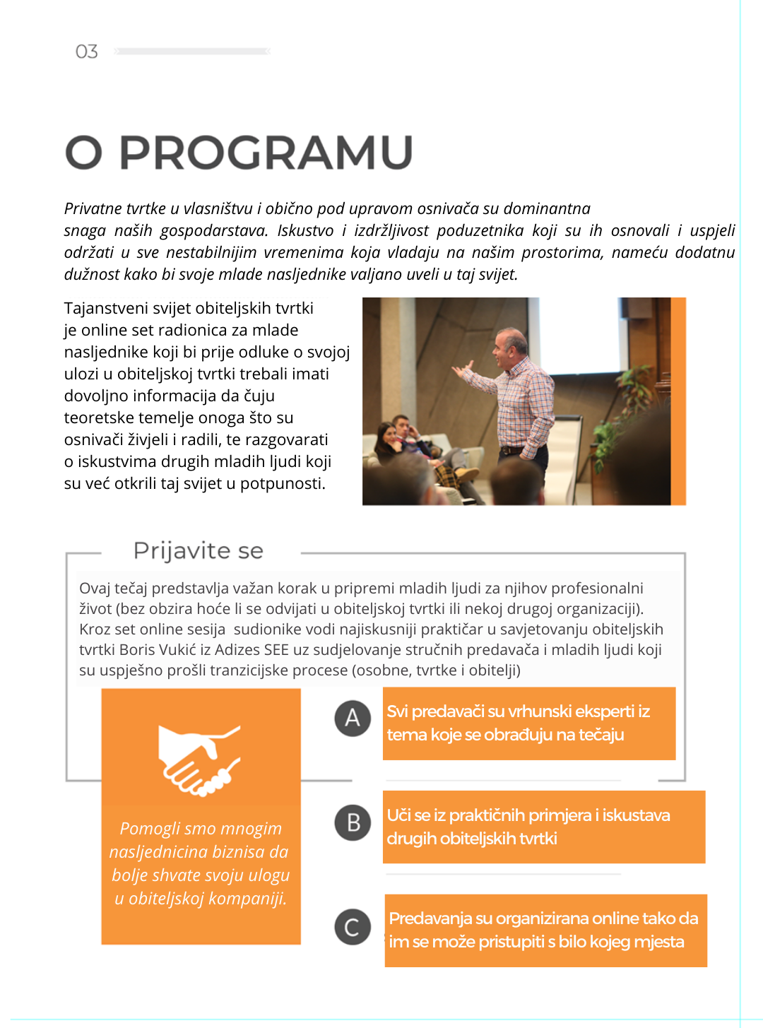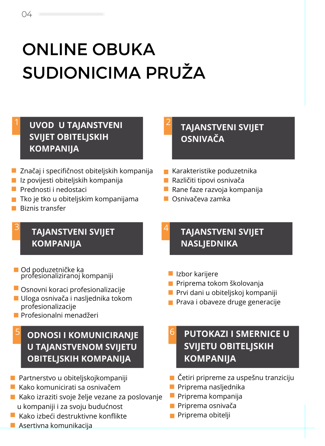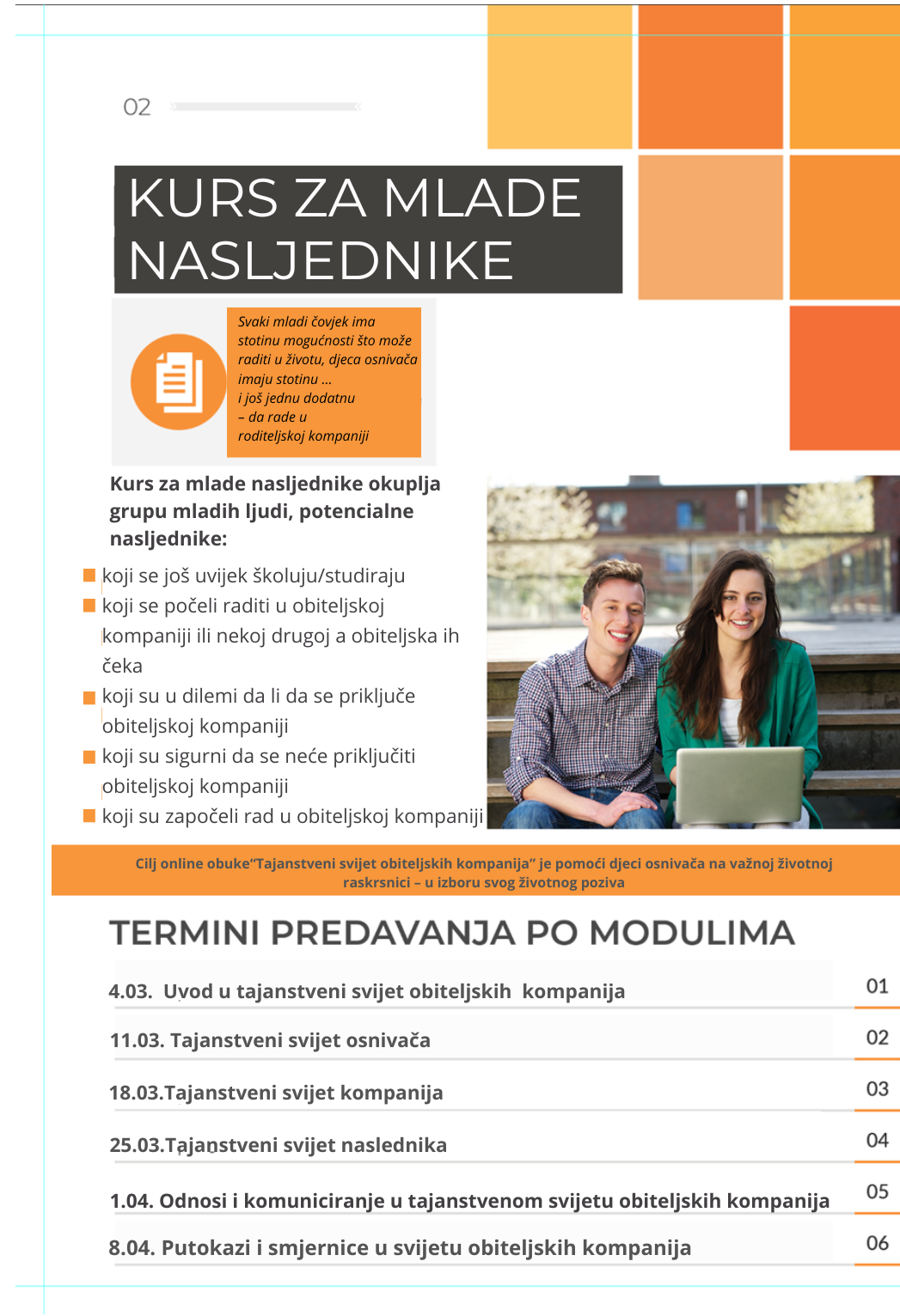 Cilj on line obuke “Tajanstveni svijet obiteljskih kompanija” je pomoći djeci osnivača na važnoj životnoj raskrsnici – u izboru svog životnog poziva